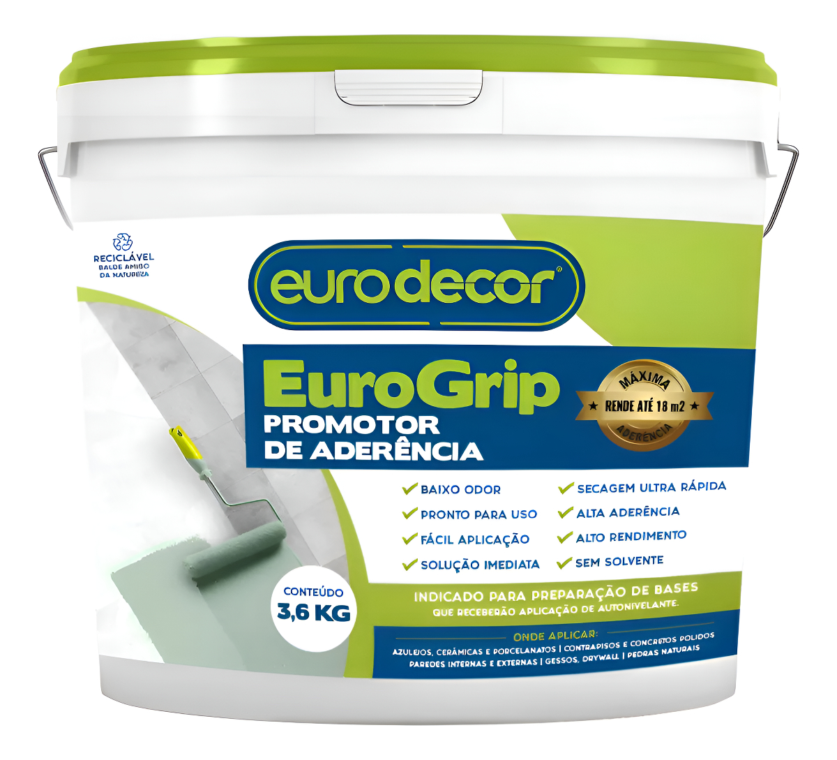 EUROGRIP é um primer promotor de aderência à base de resinas acrílicas e agregados minerais, com baixa emissão de compostos orgânicos voláteis. Cria uma superfície áspera, assegurando uma ótima aderência também sobre bases lisas ou pouco absorventes.